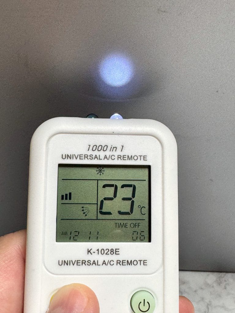 ③ 코드가 입력된 상태에서 전원을 눌렀을 때 에어컨이 켜진다면 연결이 된 것입니다.