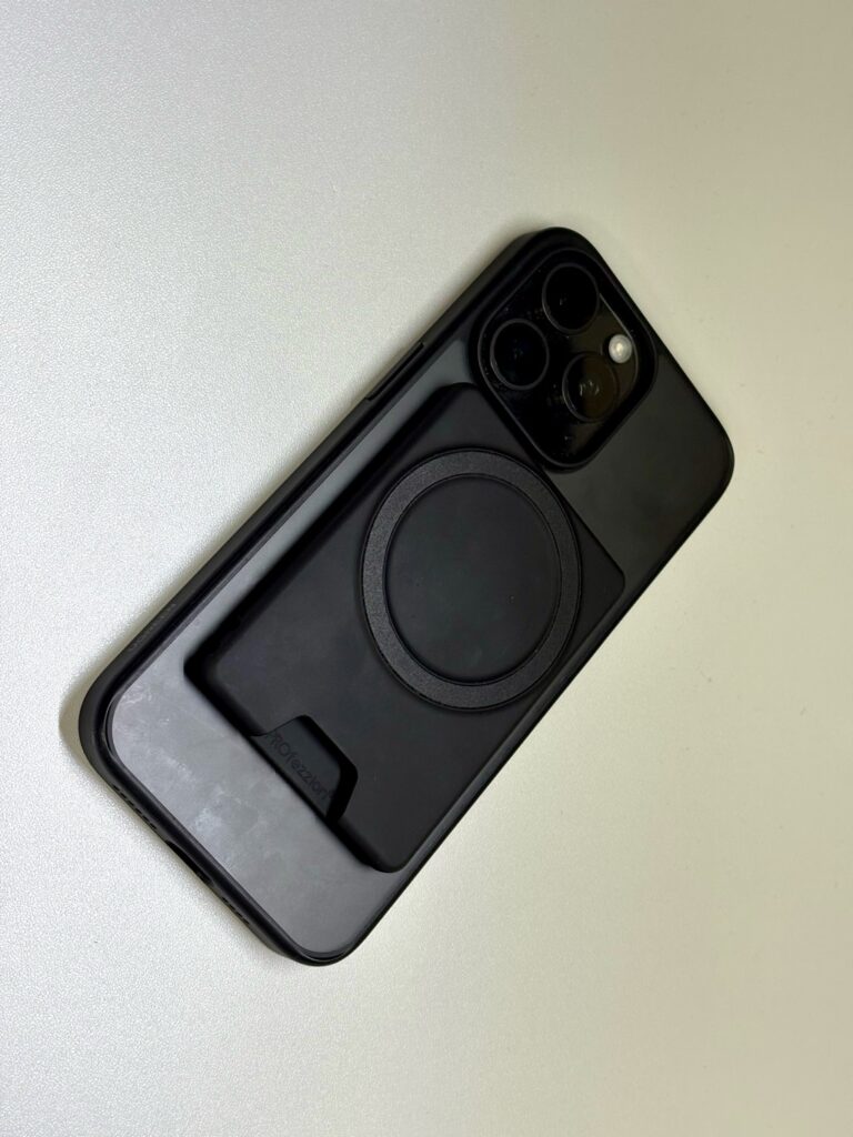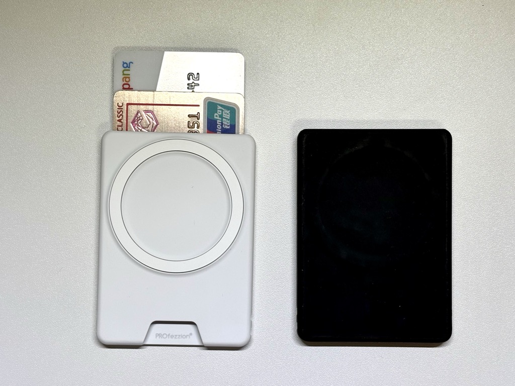 PROfezzion 맥세이프 카드지갑은 자성이 어머어마하게 강력합니다. 쎄서 좋은데 너무 쎄서 불편할 때도 있습니다. (자성은 맥세이프 지갑뿐아니라 케이스의 자성에 따라 다릅니다. 저는 Ugreen의 투명 맥세이프 케이스를 사용하고 있습니다.)