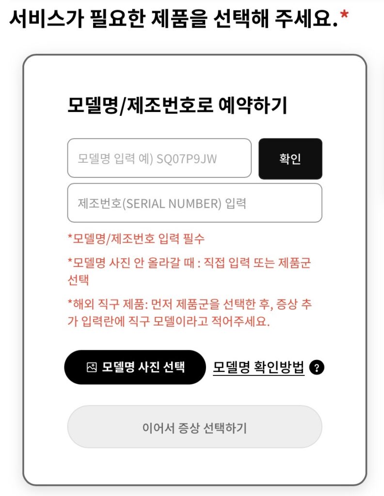 [AS신청전에 모델명을 확인해 주세요. 모델에 따라 고장의 종류, 수리해야할 부품을 미리 준비할 수 있다 합니다]