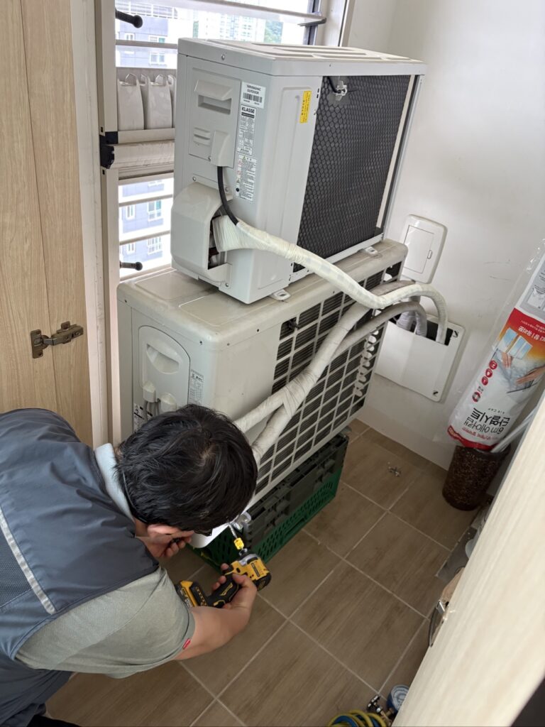 [에어컨 실외기 설치 장소와 설치 방법에 따라 작업시간이 길어질 수 있습니다]