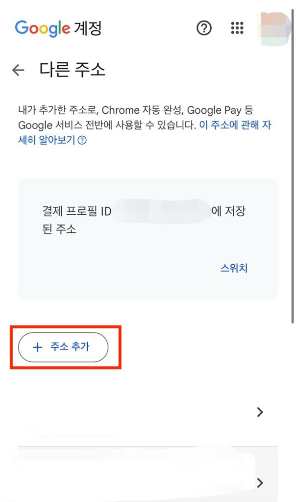 구글 결제 주소 추가 URL(링크) 결제센터 → 주소 → 주소 관리 → 주소 추가