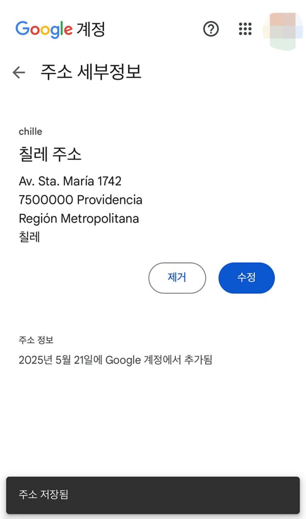 칠레 결제 주소를 추가해 주세요. 필수는 아니지만 어렵지 않으니 추가해 두는 것을 추천해 드립니다.