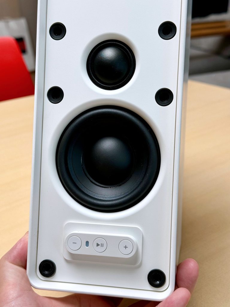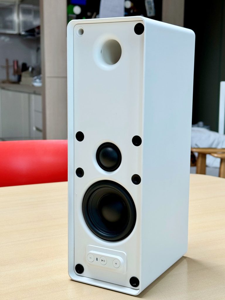 소리의 성향은 중역대인 사람의 목소리에 맞춰 있습니다. 보컬 중심의 노래를 듣는데 최적화 되어 있어 초 고음역이나 저음역은 조금 아쉽게 들릴 수 있습니다. 어찌 보면 밋밋한 사운드라 할 수 있지만 보컬 음악은 부드럽고 힘있게 뽑아내는 것을 보면 가정용 스피커의 포지션에 초첨을 맞춘게 아닐까 싶네요. 저는 한 대의 스피커(모노)로 연결했지만 두 대로 연결하여 스테레오로 들으면 좀 더 다른 소리가 날 수도 있겠습니다.