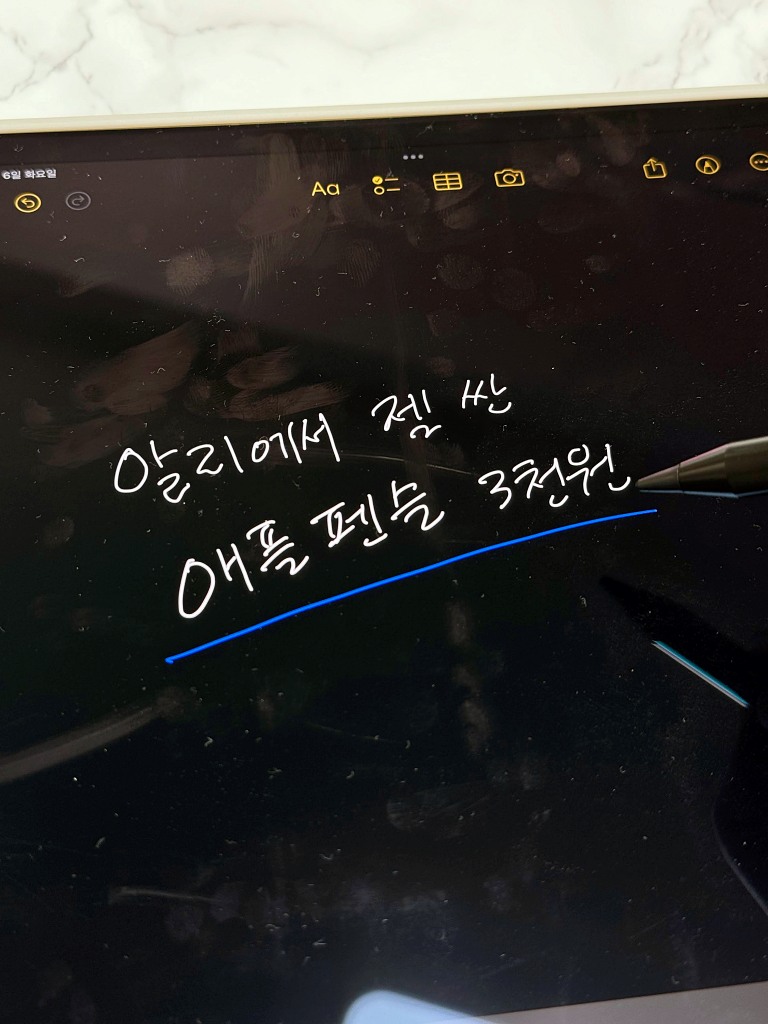 애플 정품 애플펜슬보다 100배 더 저렴한 짭플펜슬에 대한 구입과 사용 후기를 정리했습니다. 제가 구입한 가격이 3천 원이 조금 안되니 100배까지는 아니지만 손 글씨 메모를 주로 하는 저에게는 정품 애플펜슬과 기능적으로는 차이 없이 잘 활용하고 있습니다.