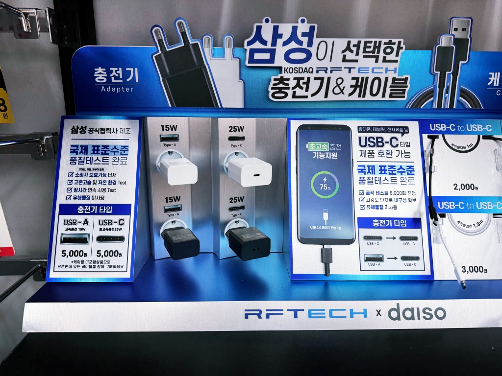 최근에 다이소에서 출시한 GAN충전기도 확인해 보세요. 삼성전자에 납품하고 있는 업체에서 납품하는 제품이라 제품의 성능과 안정성은 보장되어 있습니다. 투키 충전기보다 조금 더 비싸지만 쉽게 구입할 수 있는 것도 장점이겠네요